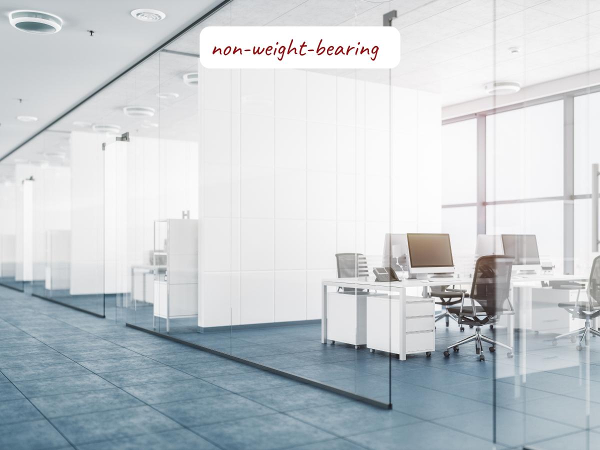 - Non-load-bearing role. The pane defines space, diffuses light, or provides privacy; it does not resist imposed loads or serve as guarding.